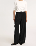 Stilig bukse med rett passform, normalt liv og plissé foran og bak.