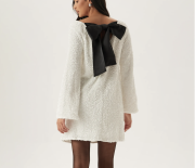 Hvit paljettkjole med stor sort sløyfe i nakken - denne skriker jul!