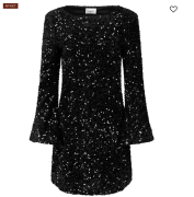 Enkel sort paljettkjole som alltid funker. Liker de vide ermene!